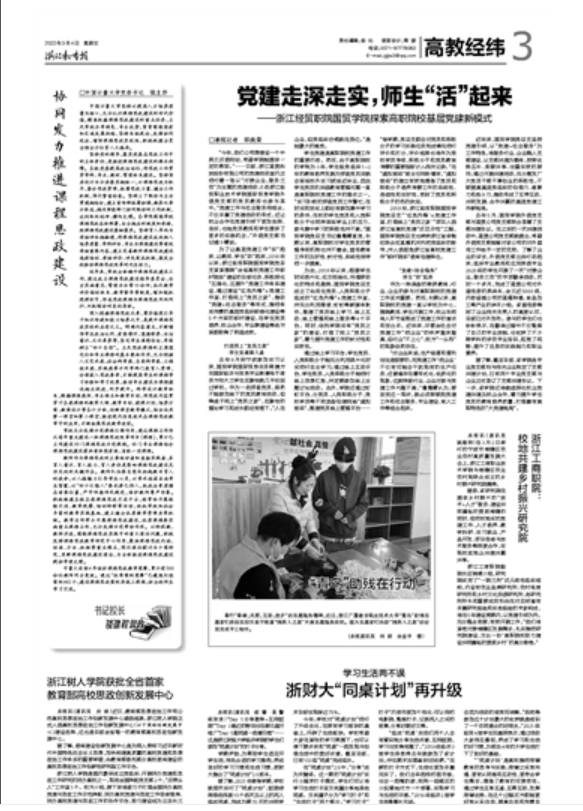 浙江教育报:党建走深走实,师生“活”起来——浙江经贸职院国贸学院探索高职院校基层党建新模式